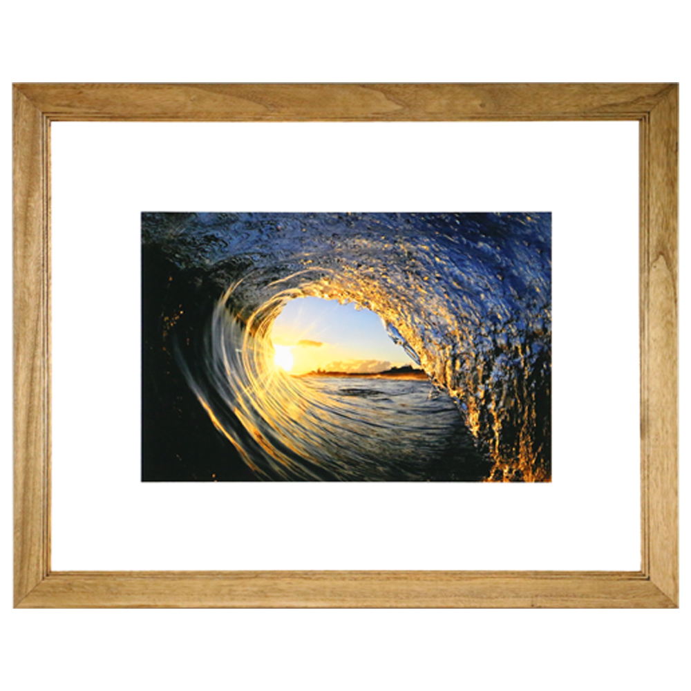 ハワイで活動をする、写真家、クラーク・リトルの写真を額装します。作品名は「Sun Curl」です。ハワイの自然を感じられる様に、ナチュラルテイストの額、インテリアとしてお部屋に飾れるようにシンプルな額装を考えました。写真の作品サイズは458×304mmです。今回、使用した額縁アンティークフレーム45 ブラウンです。まるで長い年月を重ねたような、アンティークの風合いをしたフレームになります。綺麗な材木を特殊な塗料を使って、あえて汚した風合いに仕上げております。又、作品にできるだけ広がりを出すためにマット幅を左右上下100mmと幅を広くしました。 マットの厚みは2mm厚です。今回は既製サイズがなかったため、オーダーサイズで額を作成しております。