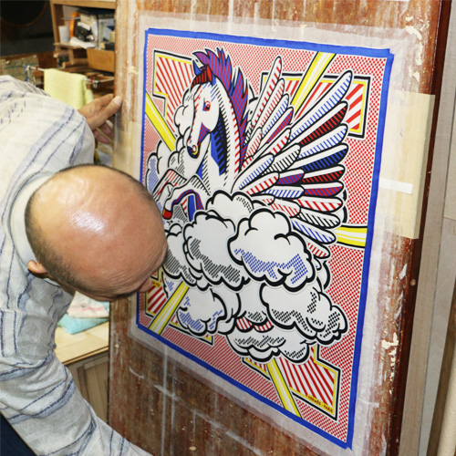 今回は薄い作品(スカーフなどの柔らかい作品)に関しての裏打ちについてご紹介いたします。