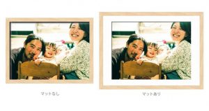 窓抜きされたマットが付属されていることが多いので、飾った時の見栄えもよく写真がガラスに付着するのを防ぎます。