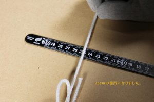 今回は額縁外寸5cmの箇所から紐を引っ張り、上から25cmとなりました。