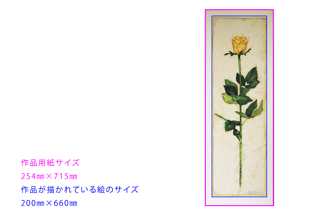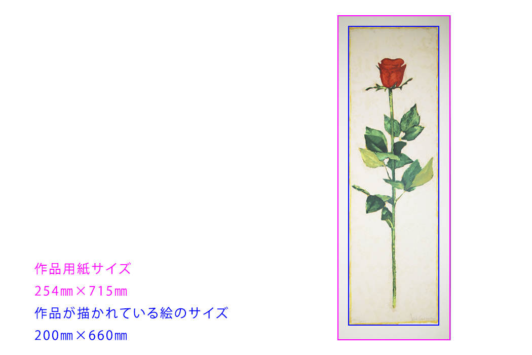 ①作品用紙サイズ、作品が描かれている絵のサイズをそれぞれ縦、横を正確に計ります。