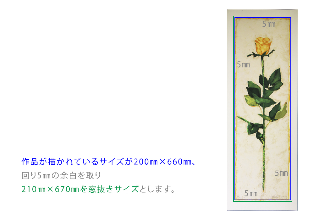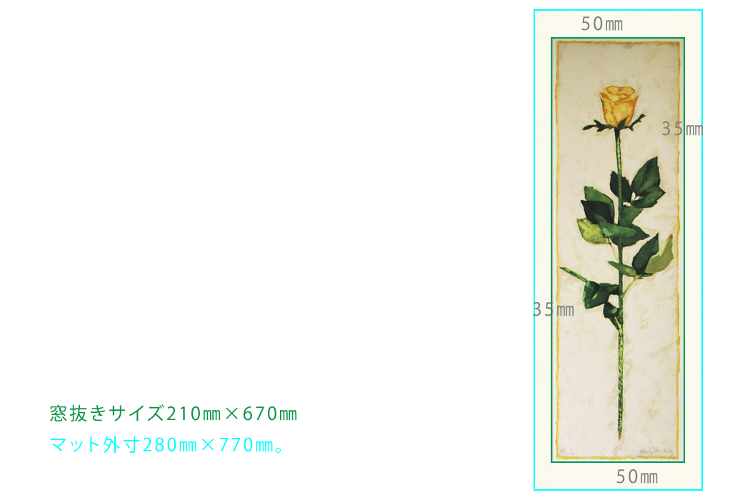 縦長の作品のため、マット幅を上下を50㎜、左右を35㎜としました。