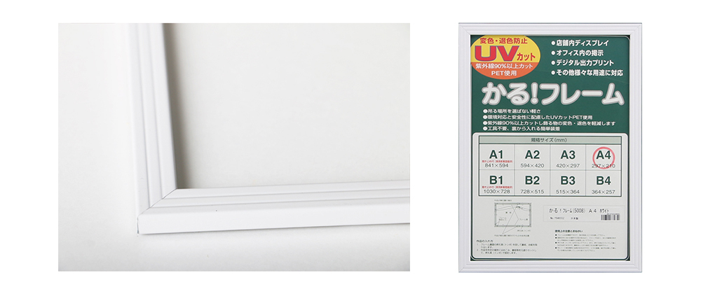 ECサイト限定商品で、名前の通りに非常に軽いフレームとなっています。安価で軽めのポスターフレームをお探しの方にもおすすめです。