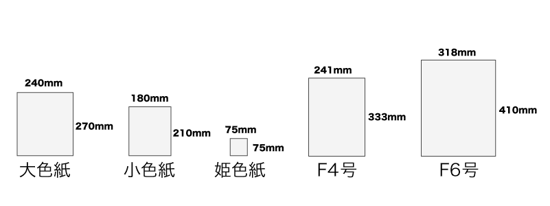 これらの色紙が「和サイズ」と呼ばれる一方で、「洋サイズ」と呼ばれる色紙もあります。「洋サイズ」はフランスで考案されたサイズを日本式のサイズに置き換えたもので、よく使われるものに「F4」「F6」サイズなどがあります。
