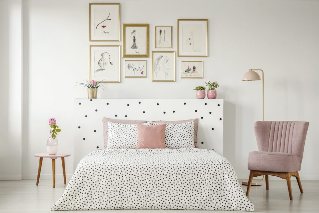 ベットルームではベットがインテリアの中心になるため、ベットの上に側に飾るのが良いです。