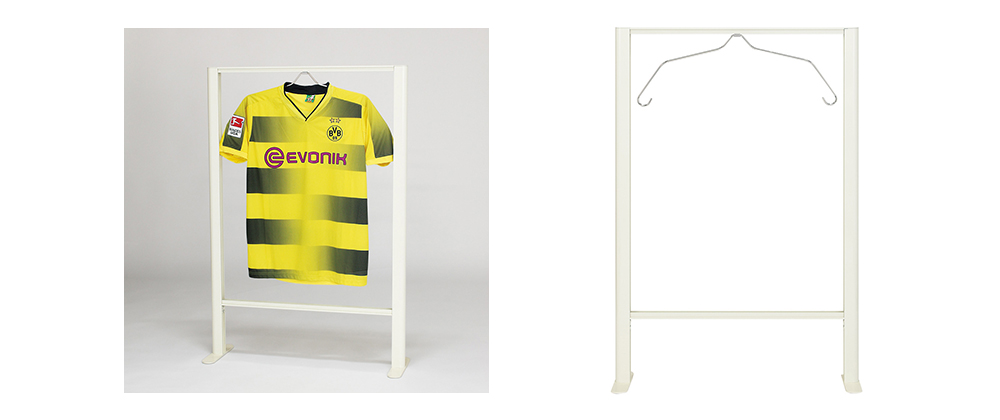 ユニフォームを飾ることを想定したこちらの商品は、床に置くタイプのフレームです。両面に透明カバー(アクリル板)仕様なので、ユニフォームやTシャツを前後から楽しめます。移動しやすく、イベントや店舗に設置するにも最適です。