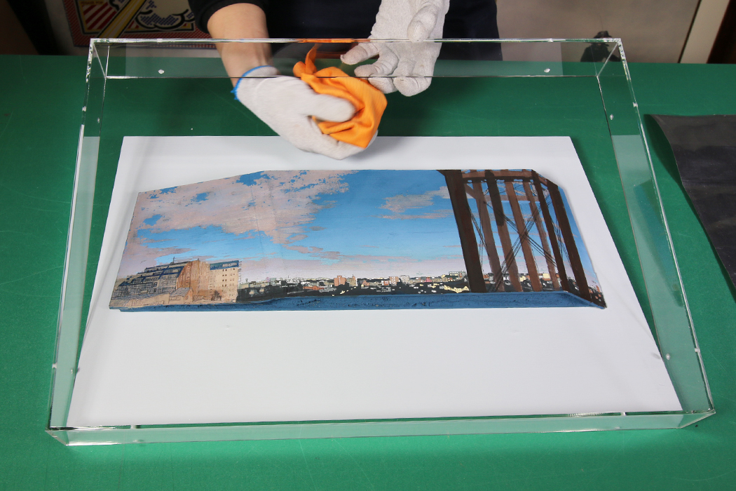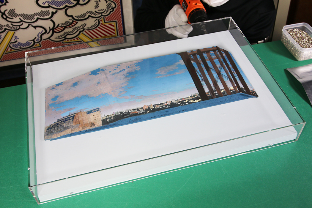 作品にアクリルBOXを被せます。