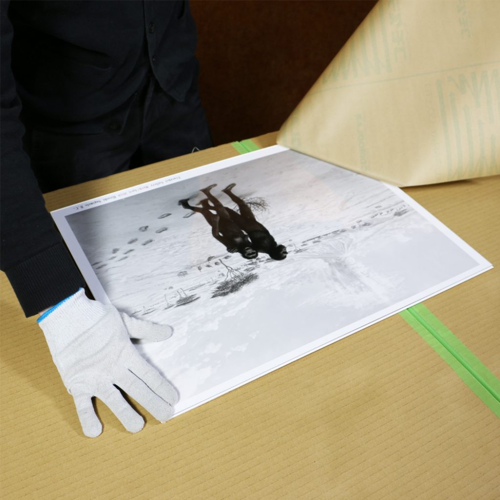 裏板、白紙、ポスターを順に置きます。