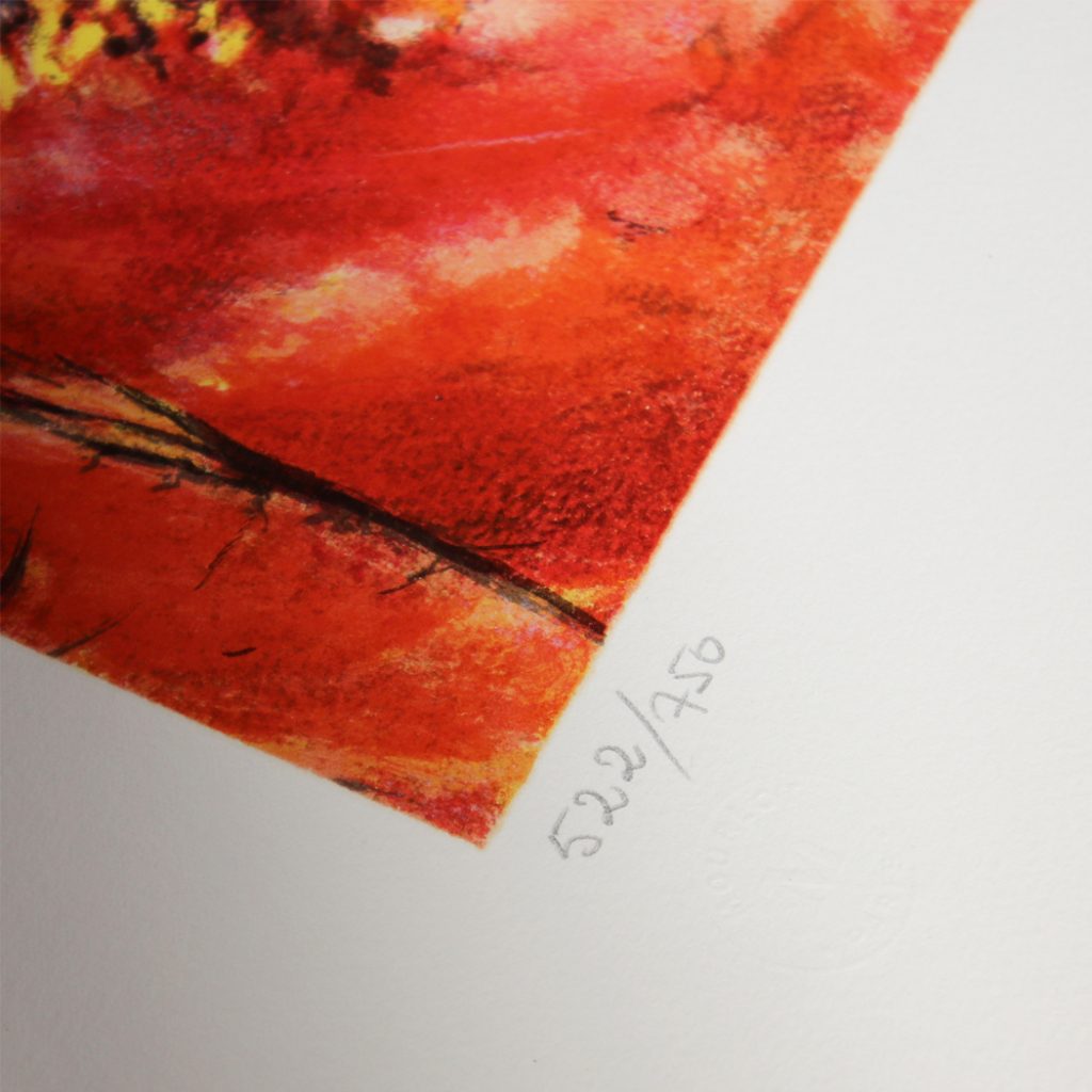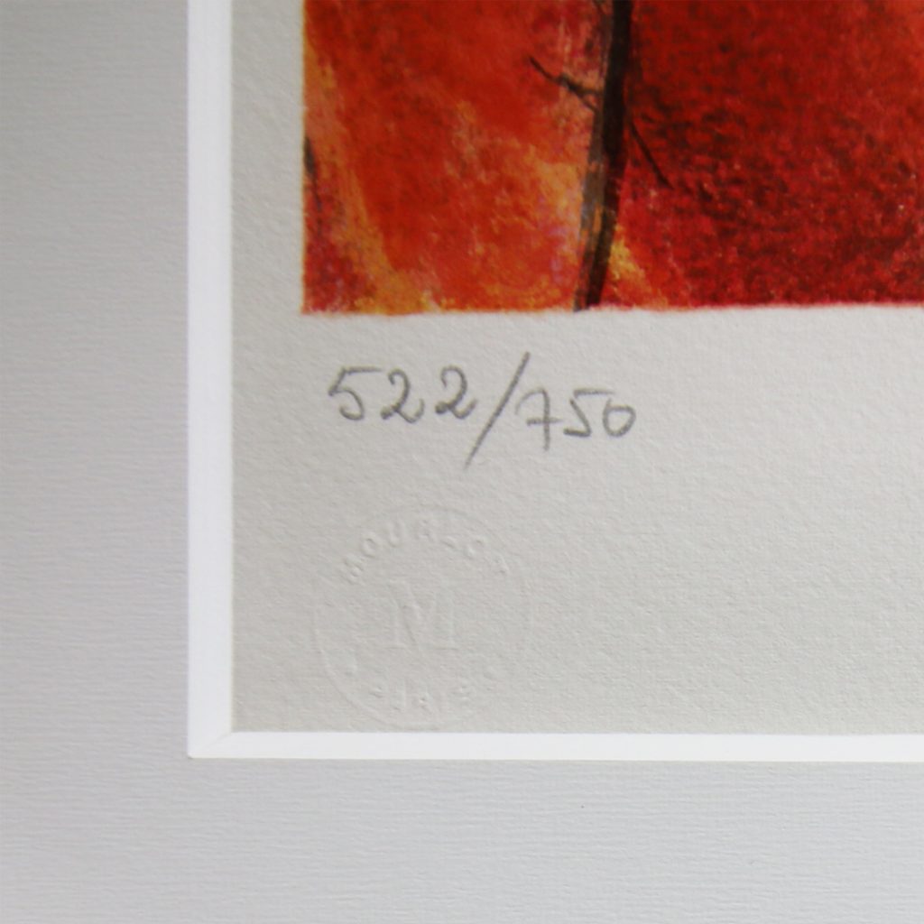 版画作品。左下、右下にはサイン、番号が記載されています。
