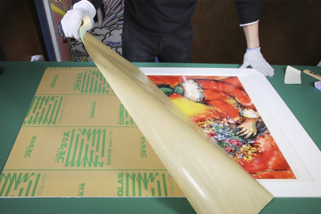 作品にアクリル板を敷きます。