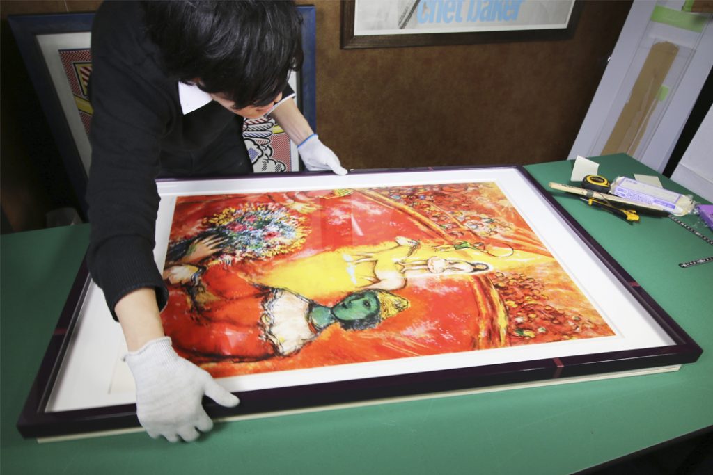 埃が中に入っていないかを確認し、取り除きます。その後、額縁を被せます。