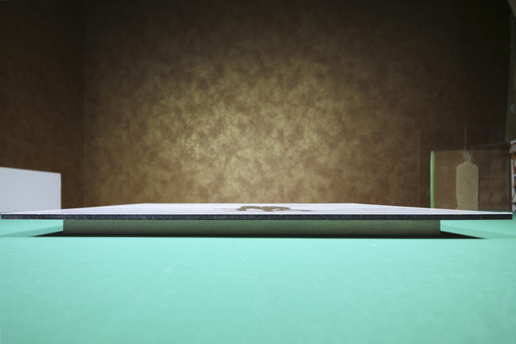 完成。作品周りに影ができ、作品が浮いているように映ります。