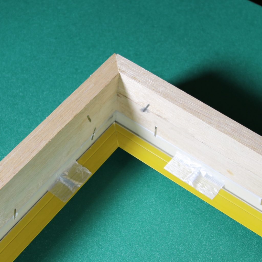ベゼルを隠すためのマットを額縁に取付けます。