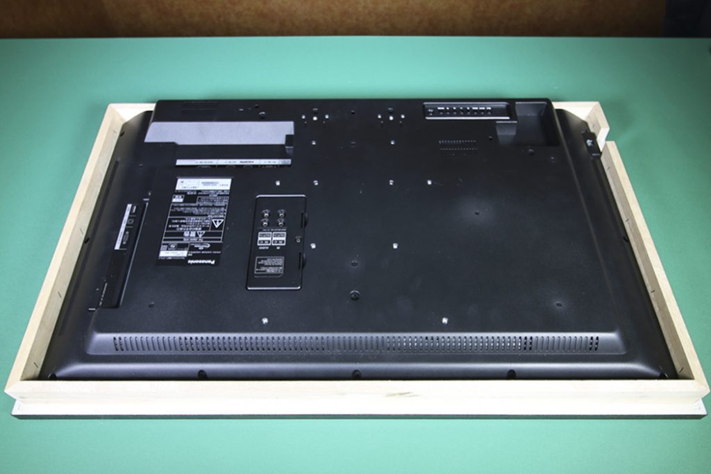 今回額装をするモニターです。(パナソニック 32V型フルハイビジョン液晶ディスプレイ TH-32EF1J)モニター周りの枠(ベゼル)が細いのが特徴です。