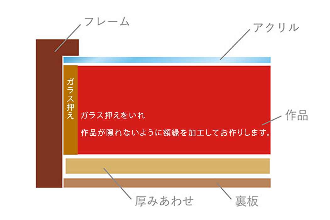 弊社では下記断面図のように額縁を加工もできます。