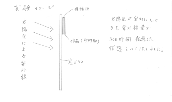 このUVカットアクリル「コモグラスCGUV40」が実際にどの程度作品保護に効果があるかを確かめるべく、