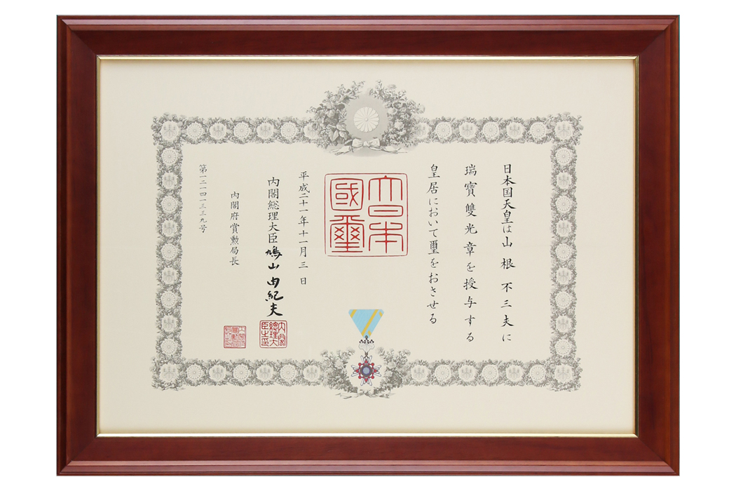 【額装方法】 勲記勲章額装 (賞状+勲章額装)