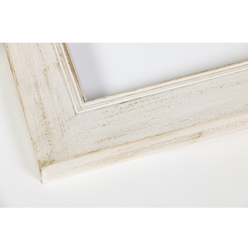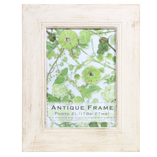 「アンティーク加工を施した額縁はありますか?」といった、お客様のご要望にお答えして、製品化をいたしました。イギリスの特殊な塗料を使って、わざと新しい材木を古びた風合いに仕上げております。シャビーシックインテリアとしての額縁を使う際にお勧めです。