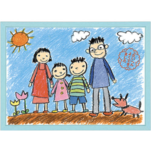 画用紙八切、四つ切サイズに合わせたフレームです。お色はホワイト、ナチュラル、ピンク、グリーン、ブルーの5色展開です。額縁が落下してもダストカバーが割れないようにエンビシートを使っています。