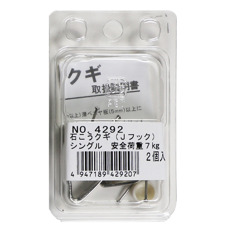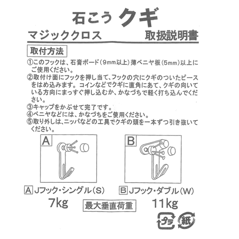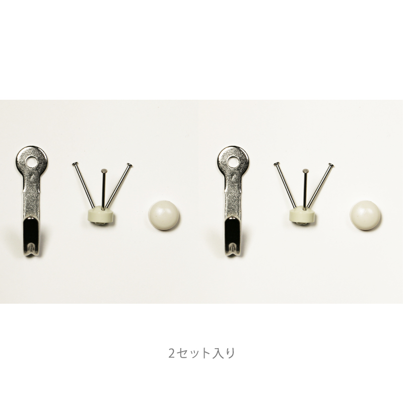 お薦めの石膏ボード専用の額吊り金具になります。3本の細い釘を壁に打つことにより、釘がクロスすることにより壁側に取付ける事ができます。耐荷重は7?となります。釘が細いので一度取り付けた後、釘を外してもあまり目立ちません。2個入っております。