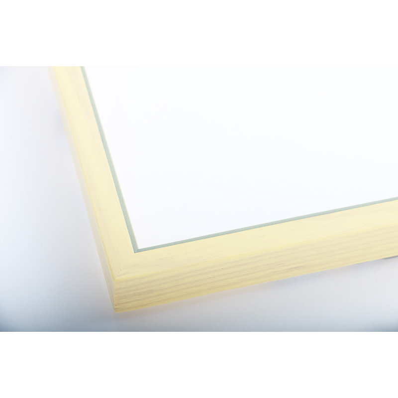 「アンティーク加工を施した額縁はありますか?」といった、お客様のご要望にお答えして、製品化をいたしました。イギリスの特殊な塗料を使って、わざと新しい材木を古びた風合いに仕上げております。シャビーシックインテリアとしての額縁を使う際にお勧めです。アンテークの風合いを生かすために、棹巾、厚みを広くしております。