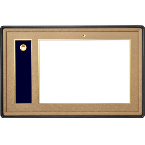 高級叙勲額になります。職人が1枚づつ生産をしていきます。色は木地(ブラウン)、チーク(ライトブラウン)、コーヒー(ダークブラウン)、黒(漆塗)の4色展開です。マットの色をご指定頂きご注文下さい。職人が1枚づつ生産させて頂きます。サイズは賞状用紙のサイズを確かめてご注文ください。