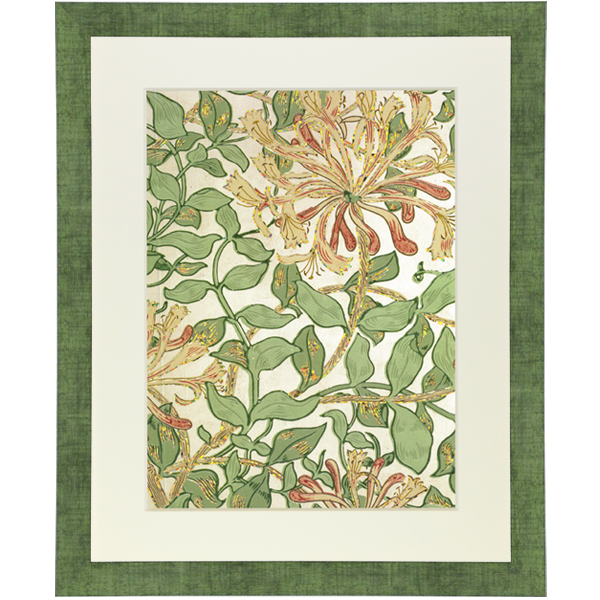 落ち着いたグリーンが作品を引き立てます。棹幅が狭いため、小さい作品を額装する時に使用される事をお勧めします。草花などの愛らしいデザインを額装すると良く似合います。棹幅が狭いため、強度上から半切までの商品展開とします。