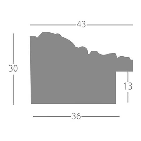 棹幅43mm、厚さ30mm、デコラティブ模様付き、非常に存在感のある額縁です。中に入れた作品を引立たせ、豪華にみせます。デッサン、版画等を額装する際に良くお選び頂いております。